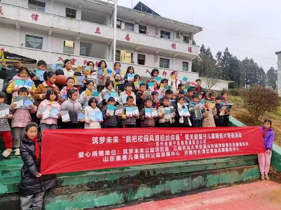 本站消息 2024-2025学年秋季学期,资源与环境学院青年志愿者协会在学院团委的指导下启动了“筑梦未来,我把校园拍给你看”暨关爱留守儿童明信片寄语活动,并于寒假期间走进贵州威宁县猴场镇联合小学实地开展志愿公益活动。