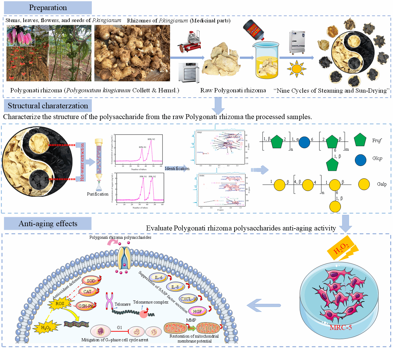 学校中药材科技创新团队精准解析黄精“九蒸九晒”炮制驱动多糖结构重塑并增强抗衰老功效机制