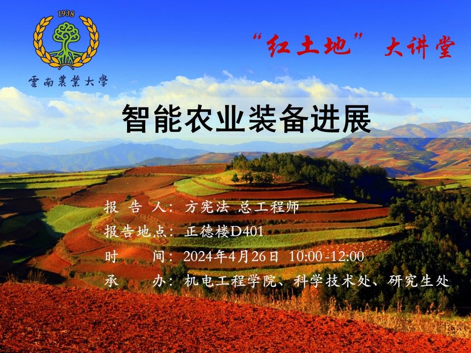4月26日“红土地”大讲堂:智能农业装备进展