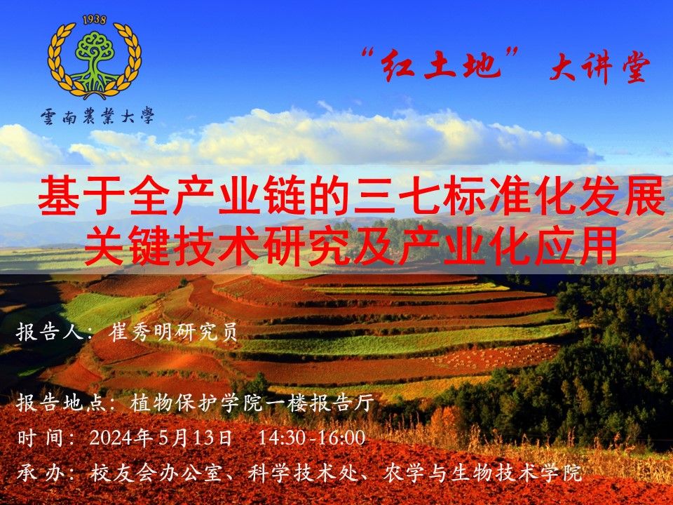 5月13日“红土地”大讲堂:基于全产业链的三七标准化发展关键技术研究及产业化应用