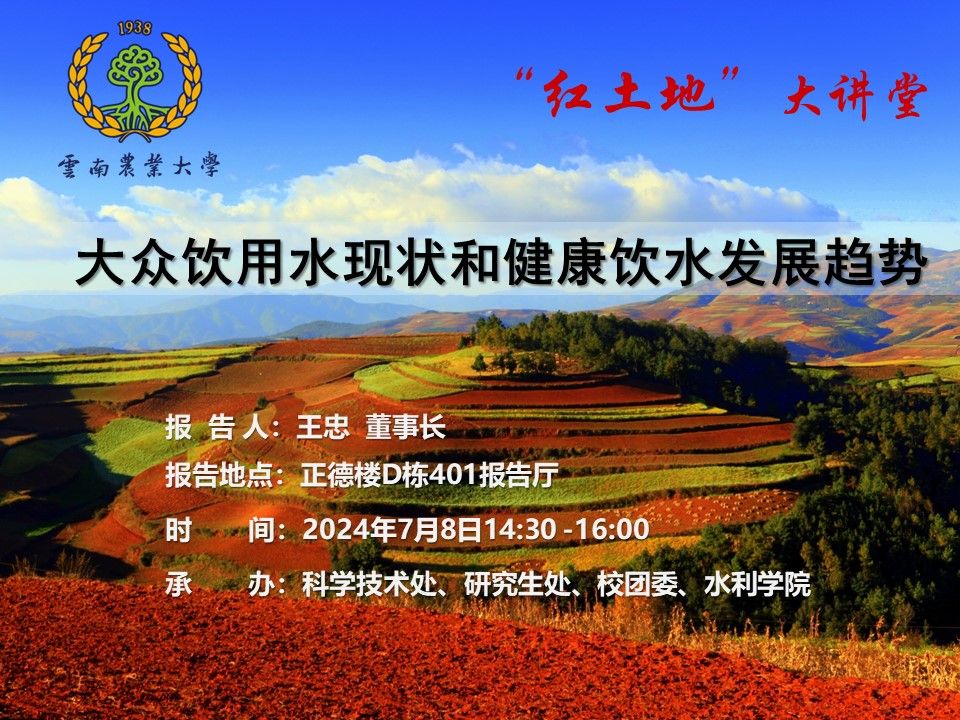7月8日红土地”大讲堂:大众饮用水现状和健康饮水发展趋势