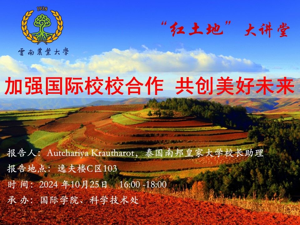 10月25日“红土地”大讲堂:加强国际校校合作 共创美好未来