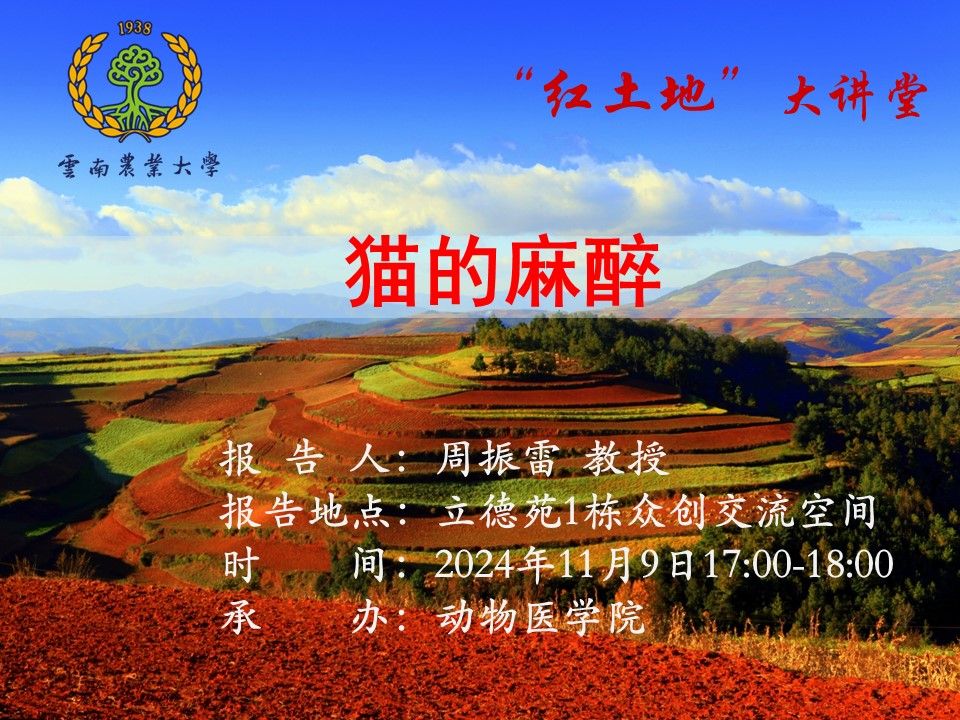 11月9日“红土地”大讲堂:猫的麻醉