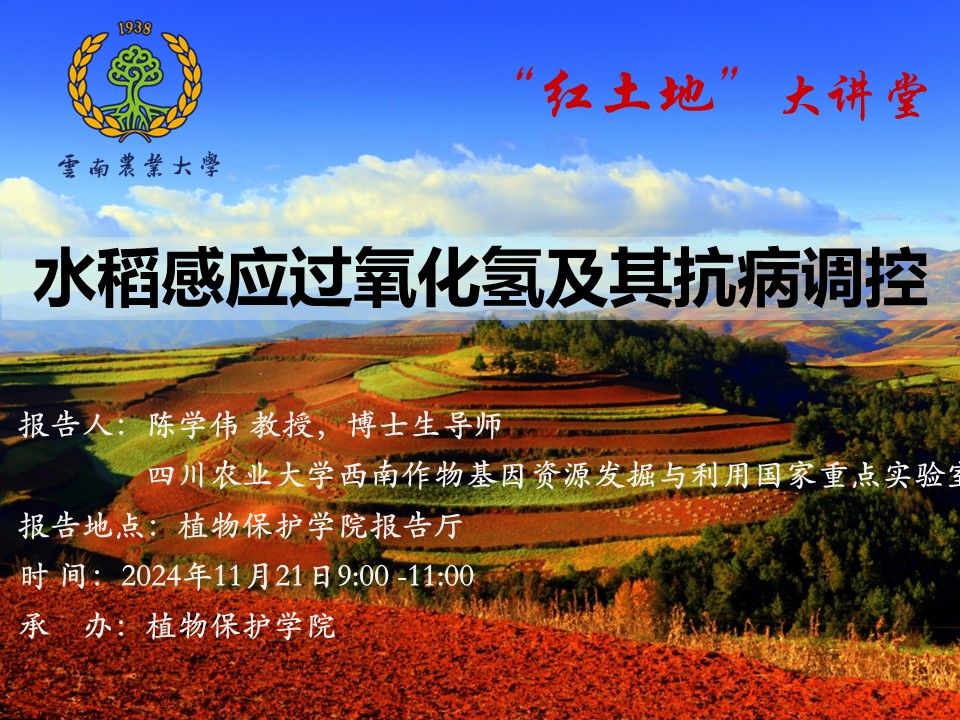 11月21日“红土地”大讲堂:水稻感应过氧化氢及其抗病调控