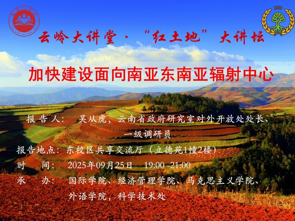 9月25日“红土地”大讲堂:加快建设面向南亚东南亚辐射中心