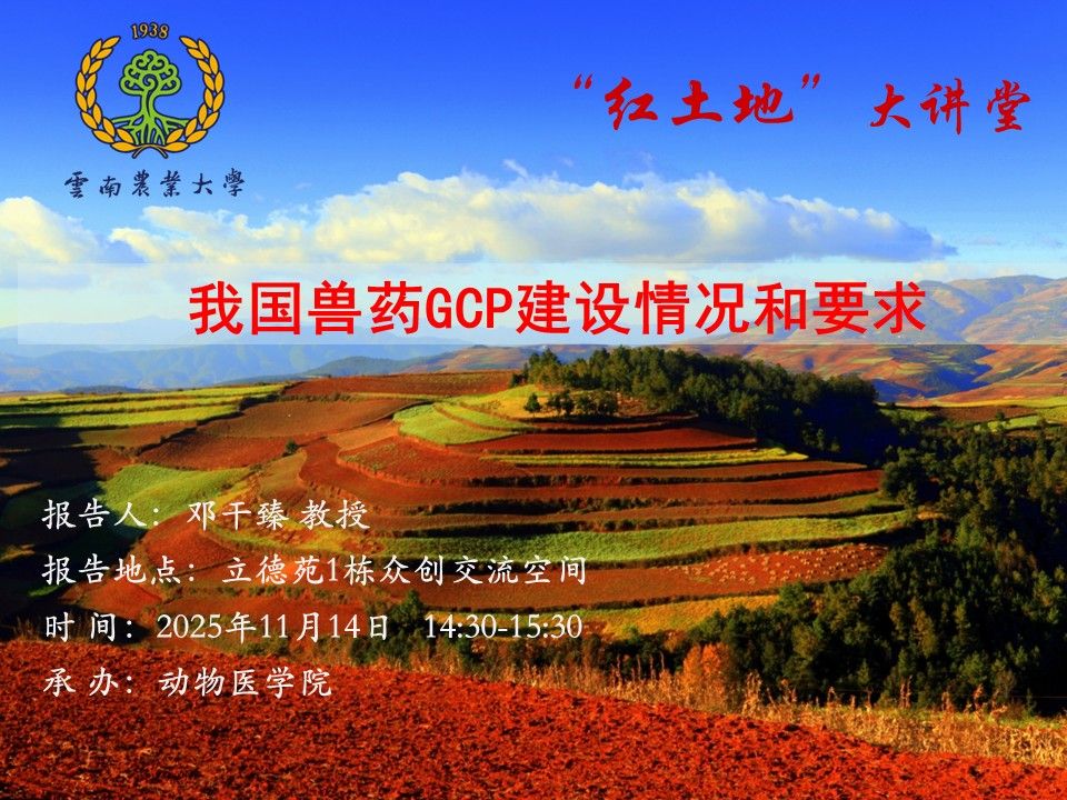 11月14日“红土地”大讲堂:我国兽药GCP建设情况和要求