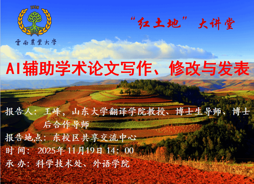 11月19日“红土地”大讲堂:AI辅助学术论文写作、修改与发表