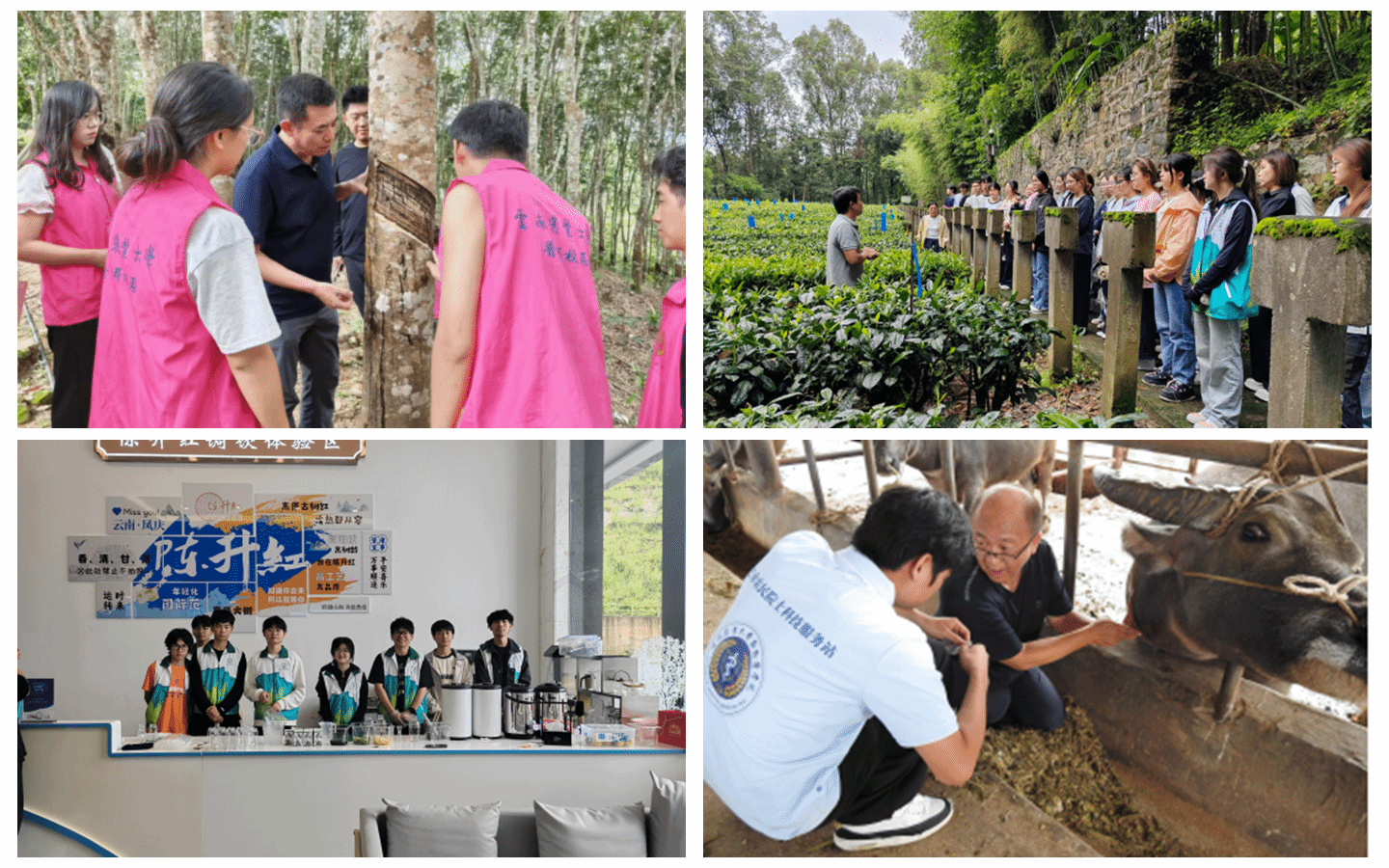 通过科技助农、产业提升等多维度帮扶,赋能乡村振兴,激活乡村内生动力。热带作物学院“热青滇边实践队”深入孟连傣族拉祜族佤族自治县勐马镇胶林开展橡胶种植全链条调研,推广“斜口深割法”新技术,效率提升40%。协助村民制定《林下经济扶持申请指南》,与孟连县勐马镇签订了“橡胶产业创新合作协议”,实现校地合作“长效化”。茶学院“凤鸣茶兴·科技领绿”实践团优化凤庆县茶叶加工工艺,开发2款创新风味咖啡配方,助力滇西茶咖产业升级,并向当地茶农派发《茶树保护简明手册》,总结出凤庆县茶产业“数字化溯源”模式等一系列可复制、可推广的成功经验。动物医学院“云岭千峒·共牧兴邦”实践团,深入云南省德宏州边境地区开展科技兴农,通过可视化培训、入户调研、技术宣讲等形式,推广健康养殖与疫病防控知识,完成芒市科技服务站建设、基层培训与器械捐赠等工作,扩充宣传常见传染病知识手册、制作微纪录片,助力于持续推进边疆养殖产业升级与民族团结共兴。动物科学技术学院“绿野循梦生态实践团”在红河州元阳县,聚焦元阳县种养循环体系中粪污资源化利用及生态农业发展,深入养殖场、专业合作社和农户,提供现场技术指导和知识普及,形成了散养户牛粪资源化处理方案,帮助企业降本增效,帮助农民科学处理畜禽粪污,通过科技支农助力绿色循环农业。动物科学技术学院“烽烟映初心·青春续华章”实践团到迪庆藏族自治州香格里拉市金江镇调研民族村寨,开展科技助农,搭建 “高校—村寨”长效对接桥梁,支持助力民族地区农业生产优化。热带作物学院“福籽同心,咖香筑梦”实践团通过文献研究、实地调研、分层访谈等多元方式,深入咖啡产业全链条与民族文化场景,完成调研任务的同时,实现了专业成长与责任担当的双重提升。